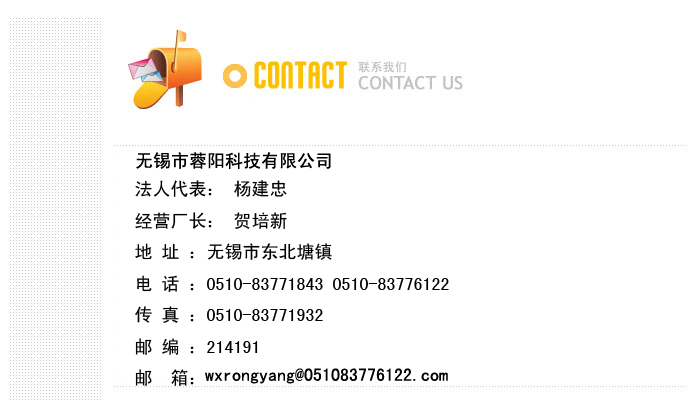 版權(quán)所有 無錫市蓉陽科技有限公司 地址:無錫市東北塘鎮(zhèn) 電話:0510-83771843