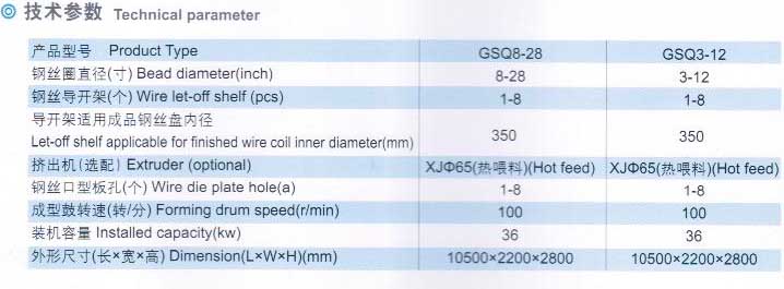 本機為制造輪胎外胎用鋼絲圈成型聯動生產線, 適應鋼絲圈斷面為長方形或正方形結構。