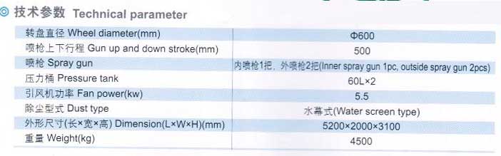 本機用于生胎殼硫化前內外噴涂隔離劑,使胎殼硫化后容易脫模,并且花紋外觀清晰漂亮。
