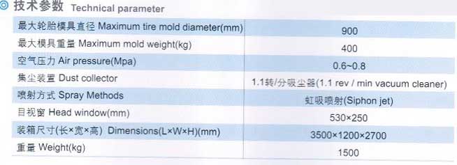 輪胎外胎加硫模用久以后,花紋面會附著臟物,如此生產出來之外胎即不美觀, 噴砂機的作用是將模具表面之臟物加以清除。