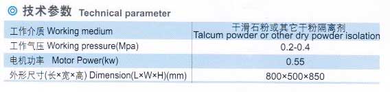 本機(jī)主要用于內(nèi)胎擠出生產(chǎn)中,胎筒內(nèi)表面或外表面噴涂隔離粉。其噴涂粉量可根據(jù)要求任意調(diào)節(jié)。
